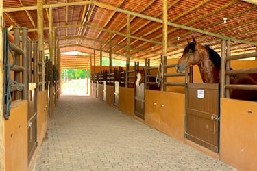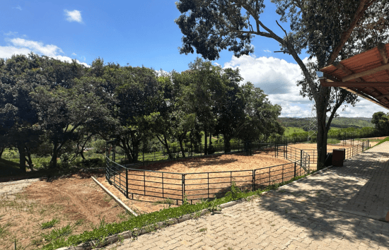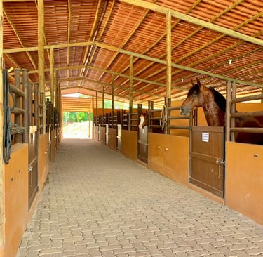 Área para eventos equestres com 60 Cocheiras, com área para montagem de mais cocheiras de eventos, estacionamento de caminhões e futuros alojamentos;